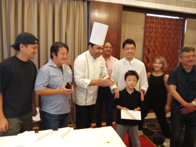 The Indo Japanese Association Mumbai conducted the now very popular Cooking demo and lunch event at Sun N Sand Hotel on Sunday 1st September 2024. Guests arrived at the venue one after the other in small groups and assembled in the Jubilee room with a lot of enthusiasm and interest to watch every step of the expert chef preparing delicacies. Chef of the Consul General Mr Sekiguchi was special invitee for the event. Our Interpreter Mrs. Chitra Khandekar translated the cooking recipe line by line in Japanese. Cooking competition was arranged from 12.00 pm to 12.30 pm and Japanese members tried their hands to prepare butter chicken and saag Paneer. The winning group was selected by the Chef of Sun N Sand Hotel and Chef of the Consul General Mr. Sekiguchi. The Ist winning group were given Vouchers with 25% discount on Sunday brunch Buffet by the Chef of Sun N Sand Hotel. Around 50 native Japanese members attended the event with family and children and enjoyed the food and drinks. From IJA Committee, Mr Mehool N Bhuva, Mrs Darshana Vasa along with Mr. Shamit Vasa, Ms Sarita Sundaram and Mrs. Chitra Khandekar attended the event. The event was a grand success.